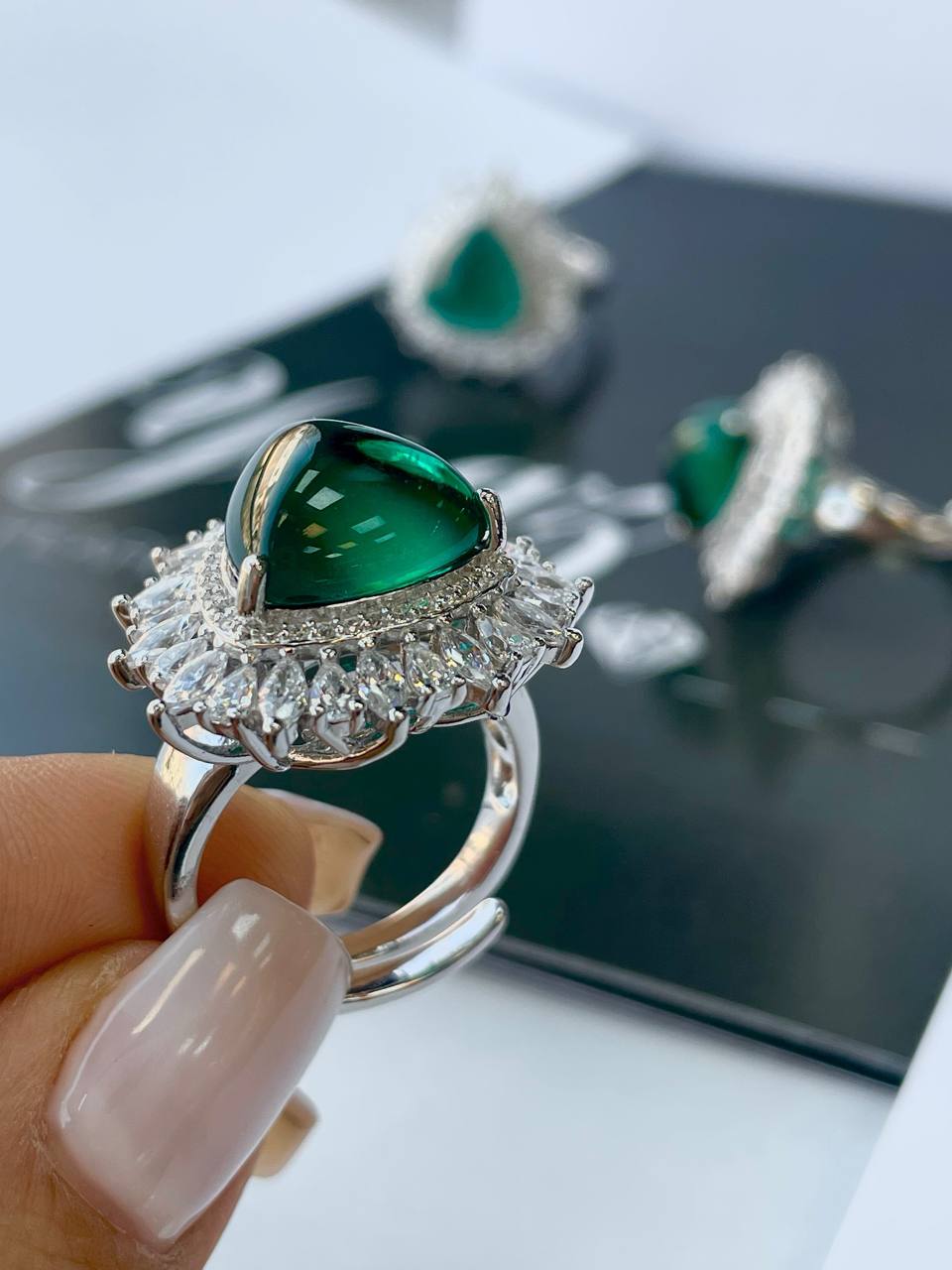 ناموجودانگشتر نقره نگین دار طرح زمرد