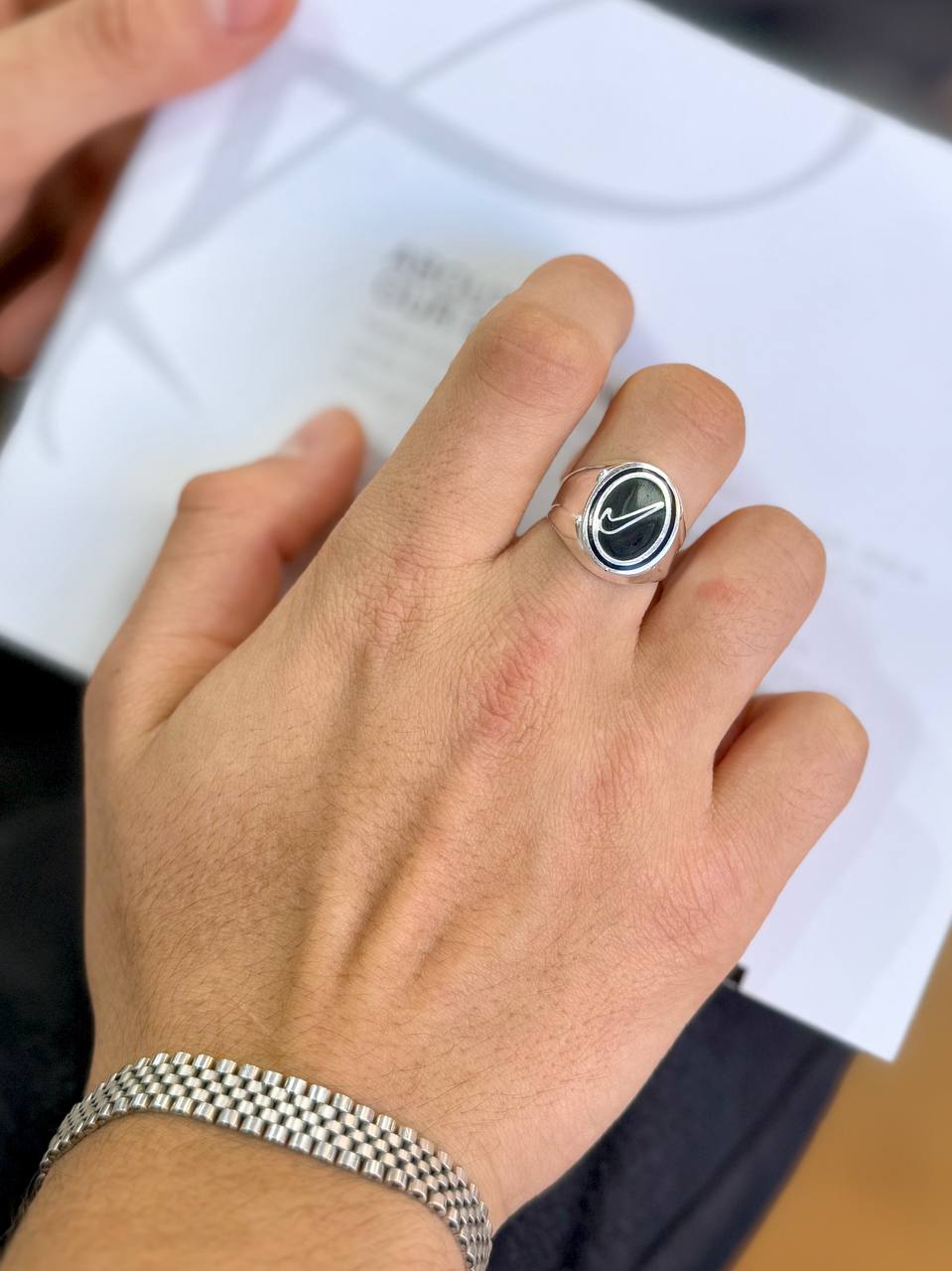 انگشتر نقره مردانه طرح نایکی