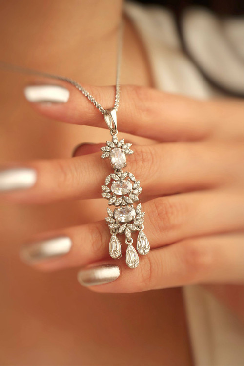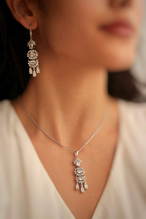 این نیمست لوکس، تجسم عینی هنر و ظرافت در صنعت جواهرسازی ایتالیا است. تراشهای خیرهکننده نگینها که با دقت و ظرافت سبک برلیان در کنار هم چیده شدهاند، نوری مسحورکننده ایجاد میکنند که در هر مجلسی شما را در مرکز توجه قرار میدهد. استفاده از آبکاری رادیوم بر روی نقره وارداتی، علاوه بر ایجاد خاصیت ضد حساسیت، درخششی مشابه طلای سفید به این مجموعه بخشیده است.