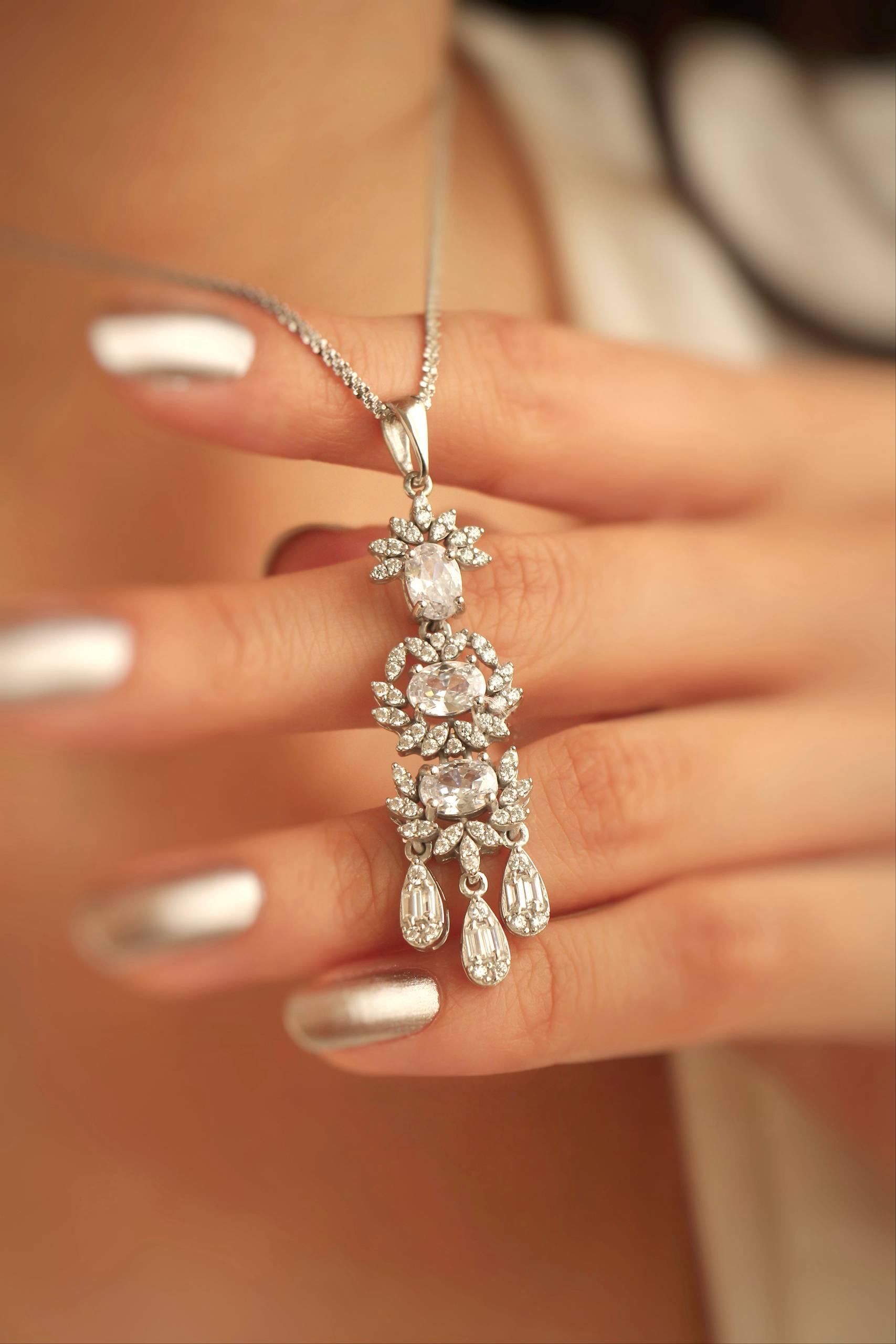 برای آنکه شکوه این نیمست تکمیل شود، یک زنجیر نقره مدل خاویاری با طول ۴۰ سانتیمتر برای آن در نظر گرفته شده است. این زنجیر با بافت منعطف و مقاوم خود، به زیبایی روی گردن قرار میگیرد و به دلیل طراحی کلاسیک، مکمل بسیار مناسبی برای آویز پرکار و جواهری این ست میباشد. تمامی قطعات این مجموعه با استانداردهای بالای کیفیت تولید شدهاند تا ماندگاری آنها تضمین شود.