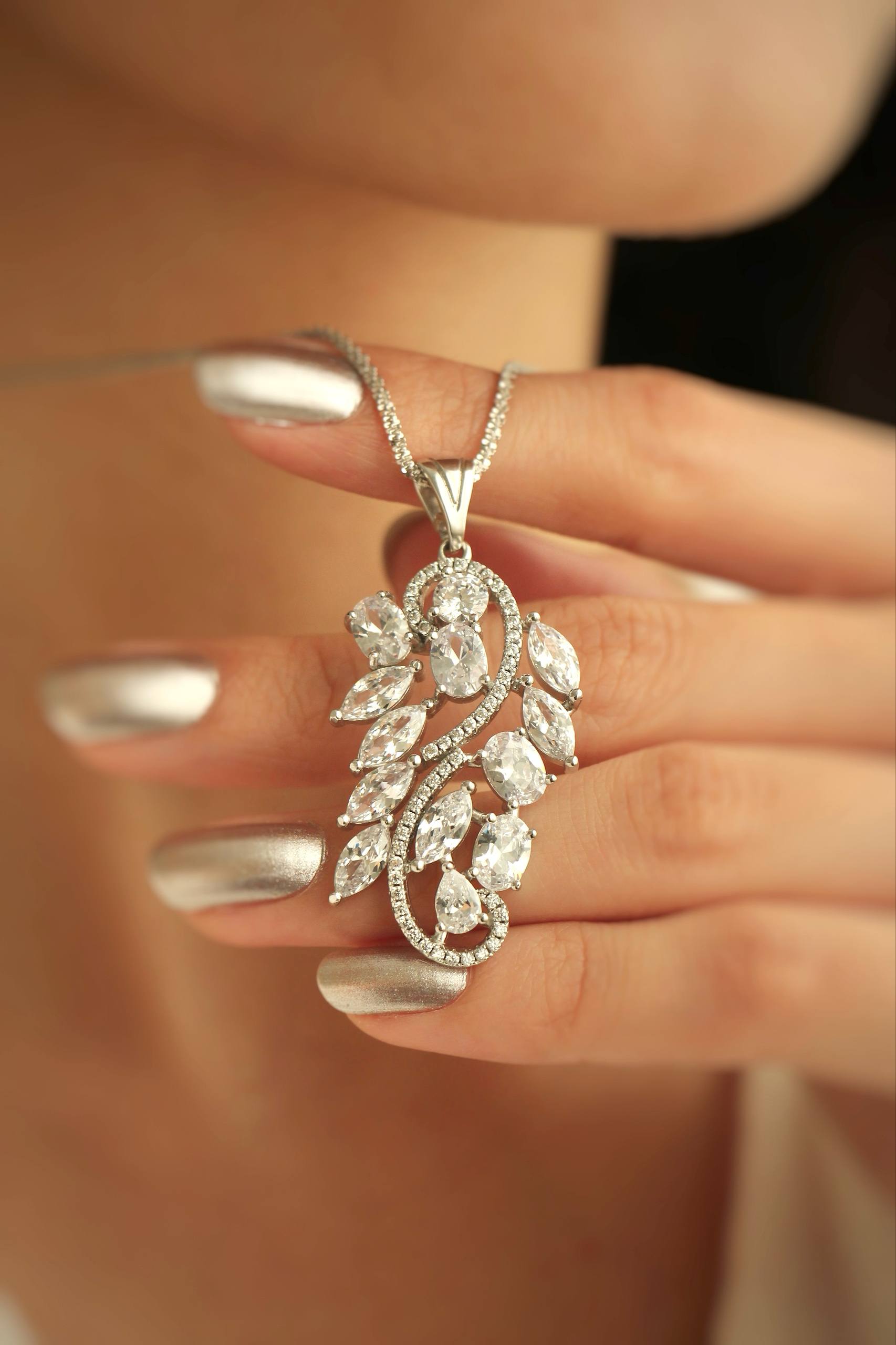 این نیمست باشکوه با یک زنجیر نقره مدل خاویاری به طول ۴۰ سانتیمتر تکمیل شده است. بافت منسجم و منعطف این زنجیر وارداتی، نهتنها تحمل وزن بالای آویز را دارد، بلکه با طراحی مینیمال خود اجازه میدهد تمرکز اصلی بر روی درخشش بینظیر نیمست باقی بماند. این ترکیب، انتخابی ایدهآل برای بانوانی است که به دنبال زیورآلاتی با وزن بالا و ظاهری کاملاً مشابه جواهرات پلاتین هستند.