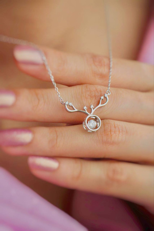 این گردنبند با الهام از زیبایی شاخهای گوزن و یک نگین درخشان در مرکز که به صورت متحرک (Dancing Stone) طراحی شده، نمادی از حیات و پویایی است. طراحی ظریف شاخها در دو طرف زنجیر، جلوهای سلطنتی و در عین حال مدرن به استایل شما میبخشد که برای هر سن و سالی خیرهکننده است.