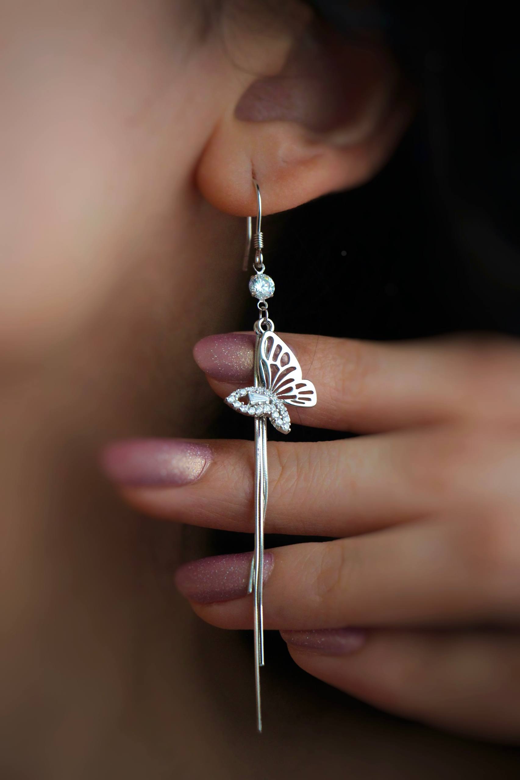 گوشواره نقره ایتالیایی طرح پروانه وزن ۳.۹ گرم (عیار ۹۲۵)