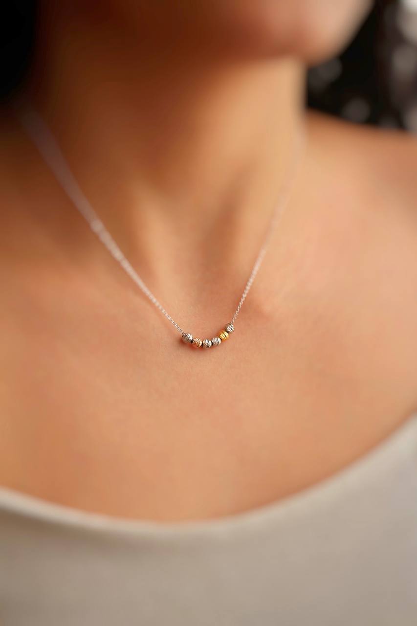 گردنبند البرنادو یکی از محبوبترین طراحیهای مدرن در دنیای جواهرات است که با گویهای تراشخورده و سهرنگ خود، تلالو خیرهکنندهای ایجاد میکند. این محصول با ظرافتی مثالزدنی طراحی شده تا به تنهایی یا در کنار سایر اکسسوریها، درخشش ملایم و جذابی به استایل روزانه و رسمی شما ببخشد. ساختار متصل زنجیر و پلاک در این کار، راحتی و زیبایی را همزمان به ارمغان میآورد.