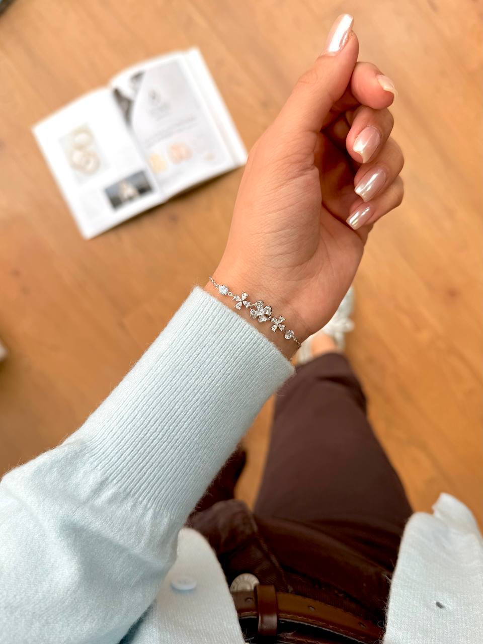 دستبند نقره مینیمال گل چهار پر