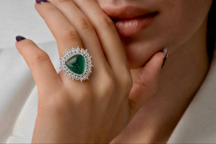 انگشتر نقره جواهری با سنگ طرح زمرد ۸ گرم (عیار ۹۲۵)