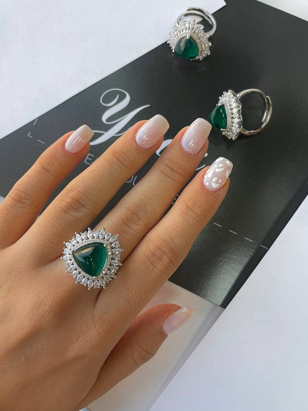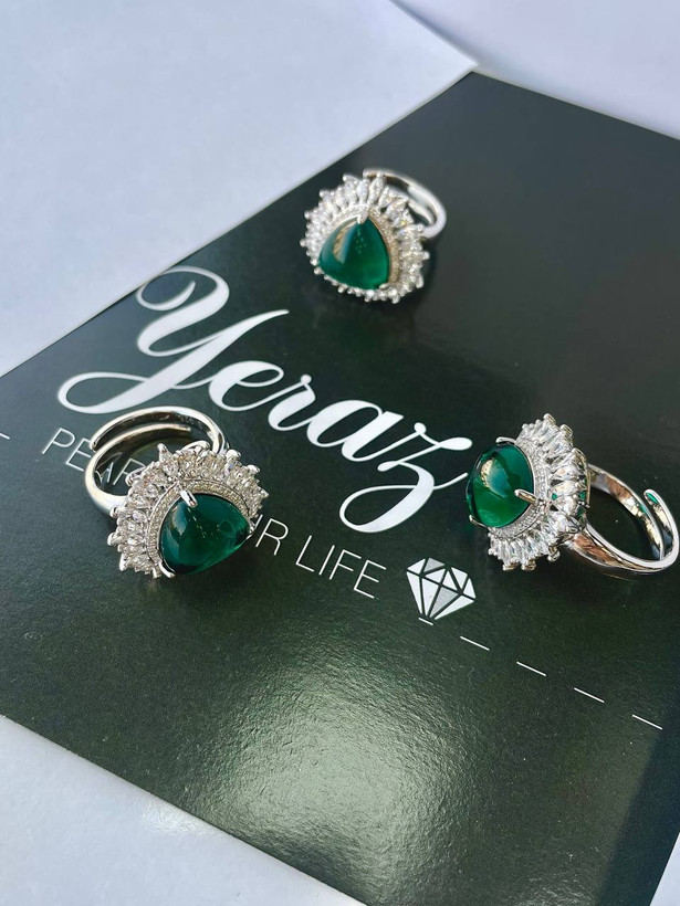 انگشتر نقره نگین دار طرح زمرد