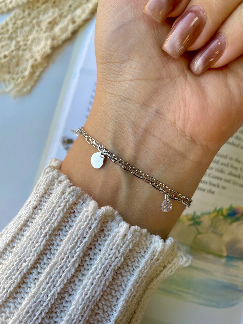 دستبند نقره مینیمال طرح دو زنجیر